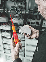 VDE-insulated torque wrench handle with 9 mm hexagon mounting; solely for Wera Kraftform Kompakt VDE blades. For professional screwdriving/fine adjustment AND for torque operated screwdriving. Slip-over torque function which cannot be overtightened - for clockwise/counterclockwise torque operation. With five selectable tightening torques clockwise/counterclockwise (2.4; 2.8; 3.2; 3.6; 4.0 Nm), which can be set very quickly. One fixed position (Torque Lock) for unlimited loosening and tightening moments. With fast-rotating sleeve for easy wielding of the tool whilst screwdriving.