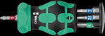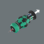 Particularly small bit holder with short bit mounting for hard-to-reach areas. The ratchet with fine toothing integrated in the handle allows fast working. Intuitive switching: If I turn the switch clockwise - the ratchet turns clockwise, if I turn the switch counterclockwise, it goes counterclockwise. Use position 0 to deactivate the ratchet mechanism for precise working. Includes 7 stainless steel bits, 6 of which are located in a magazine in the handle and one in the bitholding screwdriver. With Take it easy tool finder: with size stamping and colour coding by output to help you find the required bit easily. The strong permanent magnet in the bit mounting ensures secure holding of the bit. The 2-component Kraftform handle with the practical combination of hard and soft zones allows for a firm grip and precise working.