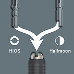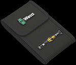 Kraftform Kompakt Micro set for precision mechanical work. Suitable for the take-up of bits with 4 mm halfmoon drive (Wera series 9) and bits with 4 mm HIOS drive (Wera series 21). Electrical surface resistance of ≤ 109 Ohm for secure protection against electrostatic charge. Manufactured in accordance with DIN EN 61340-5-1. Compact handle/interchangeable blade system for fast blade change. Kaftform Micro handle with twist cap and free-turning zone for rapid twisting, making any time-consuming repositioning of the fingers unnecessary. Power zone with integrated soft zones for the transfer of higher tightening and loosening torque. Precision zone directly above the blade for the right angle for adjustment work. Bits for manual as well as power tool operations. Rapid fixing of the bit: just push the bit into the insert for automatic locking and a secure fit. To change the bit, simply push the sleeve forward and remove. Free-turning sleeve for simple guidance of the tool during the screwdriving process