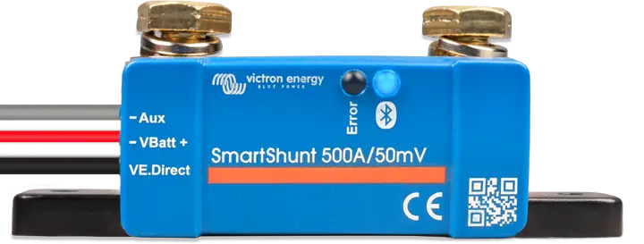 The SmartShunt is an intelligent battery monitor providing detailed usage insights via the VictronConnect app. Compatible with any battery type, it's available in IP-rated versions and easily (retro)fitted without cable clutter.By measuring voltage and current, it calculates battery state of charge and remaining runtime. Alternatively, it works as a DC meter, monitoring inverter input, or loads like fridges and pumps. Data appears instantly in the VictronConnect app without Bluetooth pairing delays.VE.Smart Networking supports wireless data sharing with other Victron devices to improve charging efficiency. Connecting to a communication centre allows remote monitoring and control via our VRM portal.